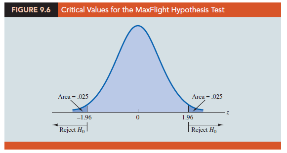 In this subsection we show how to conduct a two-tailed test about a population mean for the s known case. As an illustration, we consider the hypothesis testing situation facing MaxFlight, Inc.