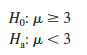 Note that the hypothesized value of the population mean is μ0 = 3.