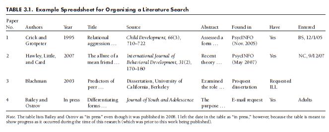 Of course, you may use a different way of organizing information from your literature search. The point is that you should have some way of organizing information that clearly records important information and avoids any duplication of effort.