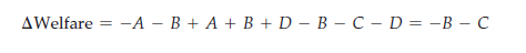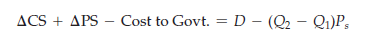What is the total welfare cost of this policy? To find out, we add the change in consumer surplus to the change in producer surplus and then subtract the cost to the government. Thus the total change in welfare is