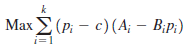 The supplier has a cost c of production per unit and must decide on the price pi to charge each segment; di is the resulting demand from segment i. The goal of the supplier is to price so as to maximize its profits. The pricing problem can be formulated as follows: