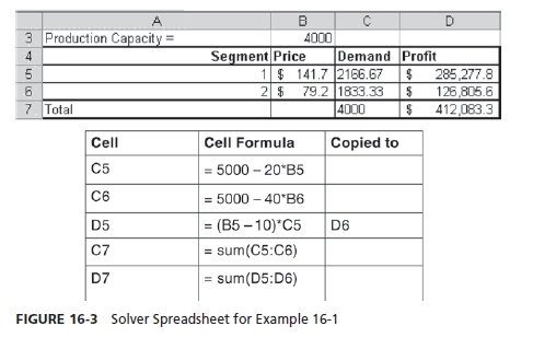 Both formulations are simple enough to be solved in Excel. Example 16-1 illustrates the benefit of differential prices to multiple segments (see worksheet Example16-1 in workbook Chapter 16- examples).