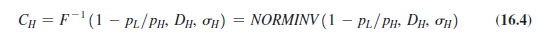 We now develop this trade-off in terms of a formula that can be used when the supplier is working with two customer segments. Let pL be the price charged to the lower-price segment and pH be the price charged to the higher-price segment with uncertain demand. Assume that the anticipated demand for the higher-price segment is normally distributed, with a mean of DH and a standard deviation of sH. If we reserve a capacity CH for the higher-price segment, the expected marginal revenue RH (CH) from reserving more capacity is given by