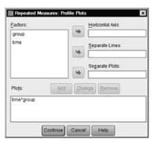 - Click on Plots. The Repeated Measures: Profile Plots window will open.