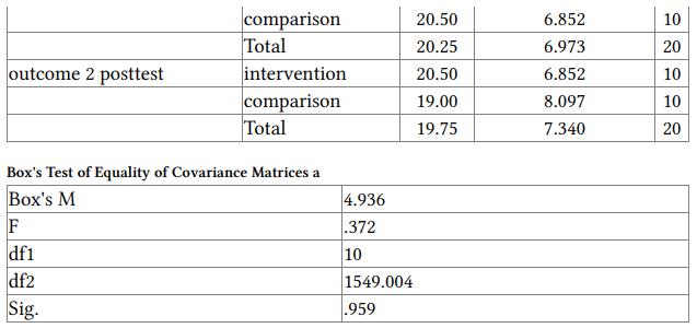 Tests the null hypothesis that the observed covariance matrices of the dependent variables are equal across groups.