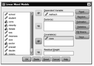 - Click on Continue. This will open the Linear Mixed Models window ( 12.12).