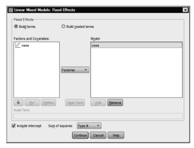 - Keep the variables as they were in 12.12, but also move cses into the Covariate box to get Figure 12.18.