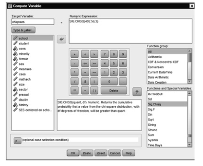 VARIABLE LABELS chiqcses ‘chi square for change in school model with cses’.