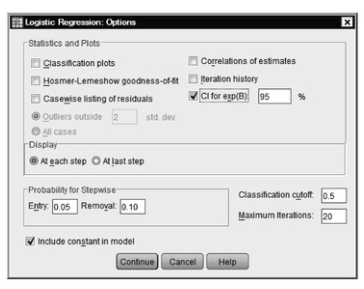 Fig. 8.2. Logistic regression: Options.