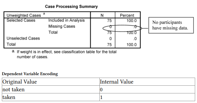 - Analyze → Regression → Binary Logistic to get to 8.1.