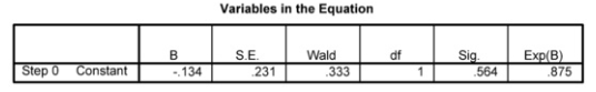 The first table under Block 0, the initial Classification Table, shows the percentage of correct predictions (53%) if all of the students were predicted to be in the larger (algebra 2 not taken) group. The first Variables in the Equation table shows that if you predicted that all students would not take algebra 2, the odds of successful prediction would not be significantly different from 50-50 (i.e., no better than chance).