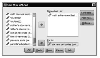 - Move math achievement into the Dependent List: box by clicking on the top arrow