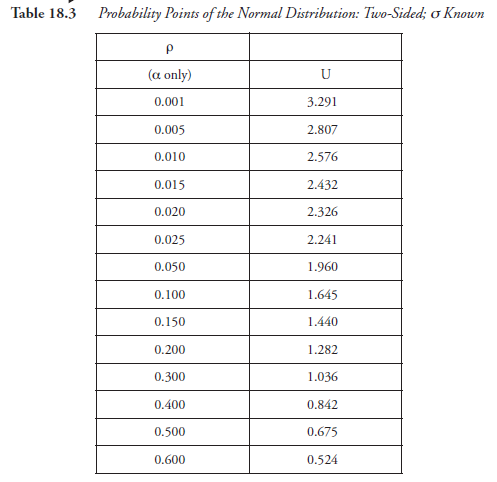 Corresponding to a = 0.05, we find Ua = 1.645.