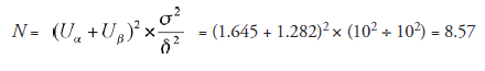 Suppose the null hypothesis, as above, is the verdict of the design. What next? Does it mean that all is lost? Not at all. We can make another design and road test it again. Suppose we reflect that the quantum of increment in a pressure of nine units is quite adequate for the required purpose, then the new δ is nine instead of ten. The values of α and β can also be varied, meaning that the experimenter will accept the risk of making the α error and the βerror a t different probability levels. Let us say, for instance, that the new values of α and β chosen by the experimenter are both 0.05. Then, following the same steps of calculation, but with different numerical values, we have