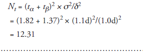 (5)3. Compute the sample size again, this time using t-distribution points in place of Uα and Uβ; it is given by