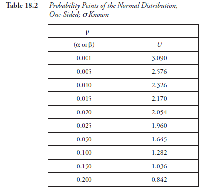 Corresponding to a = 0.05, we find Ua = 1.645.