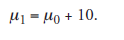 Alternate hypothesis, Ha: μ1 = μ0 + 10