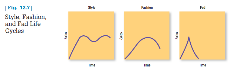We need to distinguish three special categories of product life cycles: styles, fashions, and fads (Figure 12.7). A style is a basic and distinctive mode of expression appearing in a field of human endeavor. Homes can be colonial, ranch, or Cape Cod; clothing is formal, business casual, or sporty; art is realistic, surrealistic, or abstract. A style can last for generations and go in and out of vogue. A fashion is a currently accepted or popular style in a given field. Fashions pass through four stages: distinctiveness, emulation, mass fashion, and decline.59