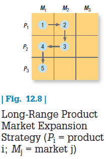 The pioneer should visualize the product markets it could enter, knowing it cannot enter all of them at once. Suppose market-segmentation analysis reveals the segments shown in Figure 12.8. The pioneer should analyze the profit potential of each singly and of all together and decide on a market expansion path. Thus, the pioneer in Figure 12.8 plans first to enter product market P1M1, then move into a second market (PjM2), then surprise the competition by developing a second product for the second market (P2M2), then take the second product back into the first market (P2M1), then launch a third product for the first market (P3M1). If this game plan works, the pioneer firm will own a good part of the first two segments, serving each with two or three products.