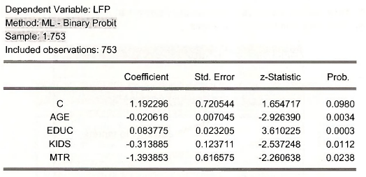 Repeat the estimation using only those women who “participated in the labor force.” Those women who worked are indicated by a dummy variable LFP which is 1 for working women, but zero otherwise.