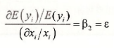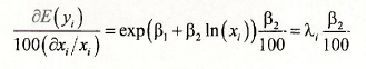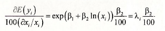 The parameter β2 is the elasticity of the output y with respect to x. A 1 % change in x is estimated to change E[y) by β2%.