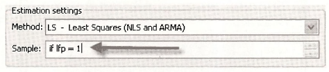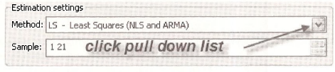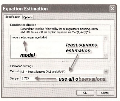A first solution is to apply least squares to all the observations. Select Quick/Estimate Equation and fill in the Equation Estimation dialog box as follows: