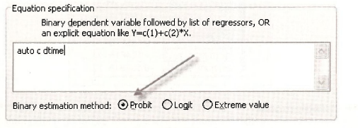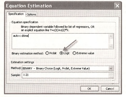 To make the estimations using the Logit model simply change the Equation Estimation entries to