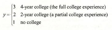 In POE Chapter 16.3 we considered the problem of choosing what type of college to attend after graduating from high school as an illustration of a choice among unordered alternatives. However, in this particular case there may in fact be natural ordering. We might rank the possibilities as