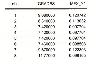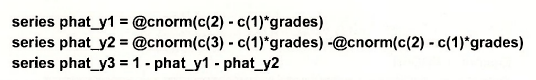 series mfx_y1 = – @dnorm(c(2) – c(1)*grades)*c(1)