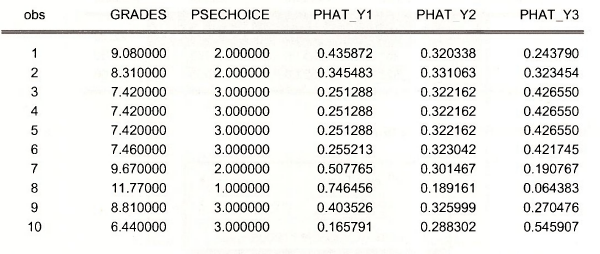 Open a Group showing the GRADES, PSECHOICE and the predicted probabilities.