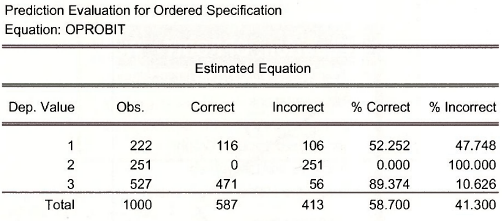 Using the “highest probability” prediction rule, EViews calculates