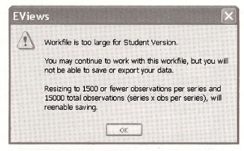 Despite these changes the file still cannot be saved with the Student Version of EViews 6. Your options are to switch to the full version, or to make sure you print out all intermediate results as you go along.