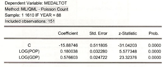 In the Olympics example, based on the estimation results, we conclude that a 1% increase population increases the expected medal count by 0.18%, and a 1% in GDP increases expected medal count by 0.5766%.
