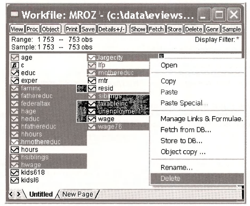 We can still operate with the workfile, but we cannot save it even if we delete some variables. Give this a try, deleting the variables that are needed in this example.