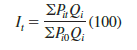 In some quantity indexes the weight for item i is taken to be the base-period price (Pi0), in which case the weighted aggregate quantity index is