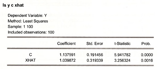 Note that the t-statistic for the coefficient on the residuals from the step one regression is 6.11 and the p-value of this test clearly shows that the /-statistic is statistically significant at the 1% level, so we reject the null hypothesis of no correlation between x and the error term e in favor of the alternative that* and e are correlated.