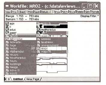 A second problem is that in the data only the first 428 women have wage data. The remainder have WAGE = 0 because they do not participate in the labor market. In the workfile window select the Sample button.