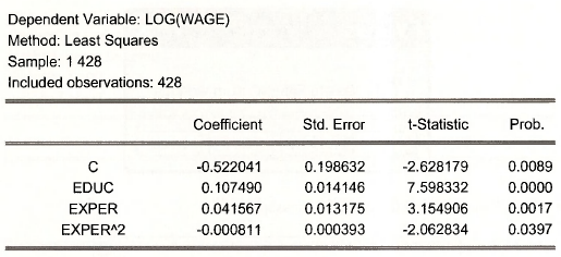 The result matches those on POE page 281. As noted in POE the concern is that the variable EDUC might be correlated with factors in the error term, such as ability. If that is the case, then the least squares estimator is biased and the bias will not disappear even if the sample size becomes very large.