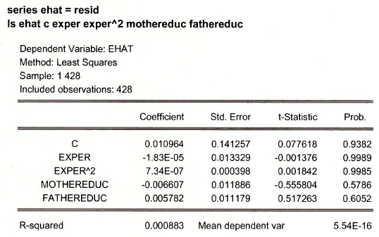 To test the endogeneity of EDUC we obtain the reduced form residuals and then include them in the wage equation as an extra explanatory variable.