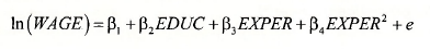 In Chapter 10.2 we introduced an important example, the estimation of the relationship between wages, specifically \og(WAGE), and years of education (EDUC). We will use the data on married women in the workfile mroz,wfl to examine this relationship. Open this workfile