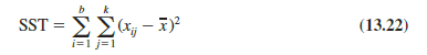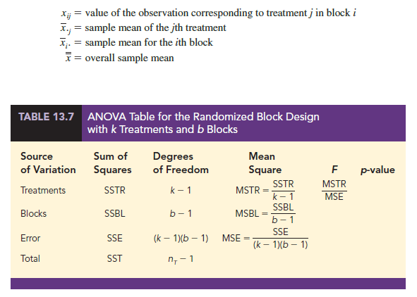 This sum of squares partition is summarized in the ANOVA table for the randomized block design as shown in Table 13.7. The notation used in the table is