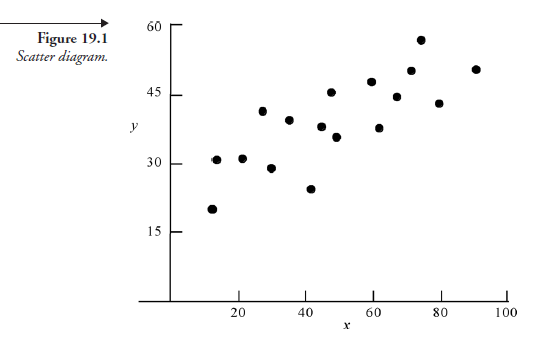 When two sets of variables are associated with any kind of relation, their relation can be represented on a graph as a set of points, each point determined by a pair of corresponding coordinates, one from each set. When there is a cause-effect relation, the values of the independent variable are shown on the horizontal axis and those of the dependent variable on the vertical axis. Such a graph is known as a scatter diagram (see Figure 19.1) because the points can be scattered without any obvious order. The statistical technique used to develop a mathematical equation representing the relation (if there is one) among the points is known as regression analysis. Depending on how closely such a mathematical equation represents the scatter among all the points, the strength of the relation between the two variables can be determined using a technique known as correlation analysis, the result of which is called the correlation coefficient.