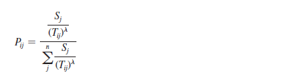 Pij = Probability of a consumer’s traveling from home i to shopping location j