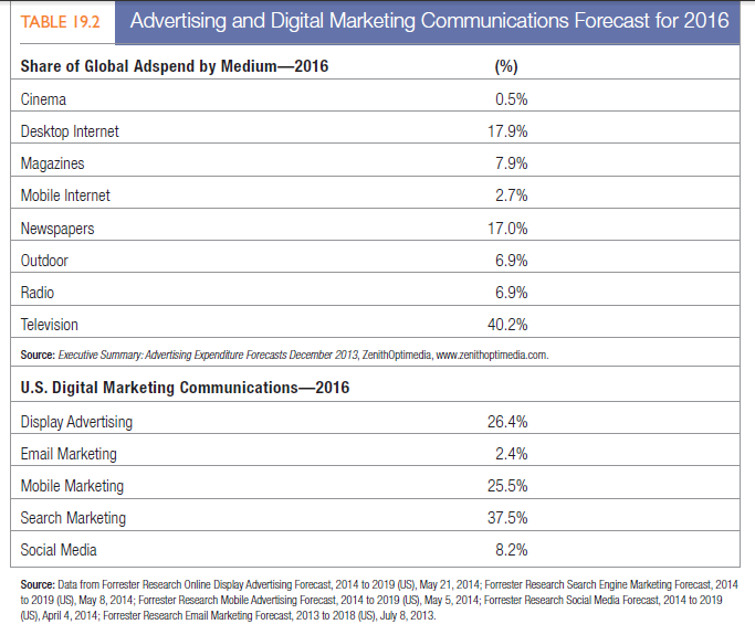 Companies must allocate their marketing communications budget over the eight major modes of communication— advertising, sales promotion, events and experiences, public relations and publicity, online and social media marketing, mobile marketing, direct and database marketing, and the sales force. Within the same industry, companies can differ considerably in their media and channel choices. Avon concentrates its promotional funds on personal selling, whereas Revlon spends heavily on advertising. Electrolux spent heavily on a door-to-door sales force for years, whereas Hoover relied more on advertising. Table 19.2 forecasts spending on some major forms of communication.