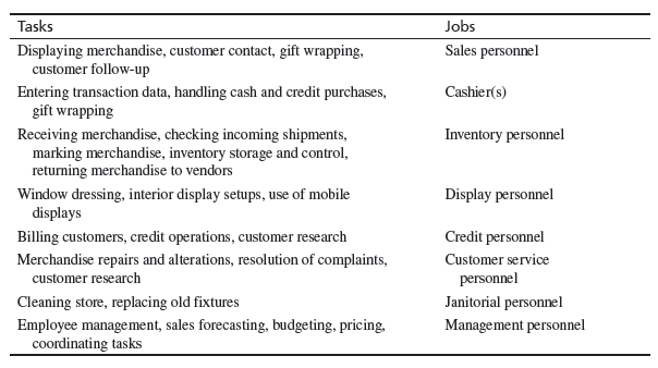 After the retailer decides which tasks to perform, they are grouped into jobs. The jobs must be clearly structured. Here are examples of grouping tasks into jobs: