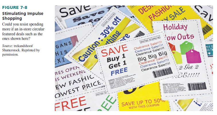 - The leading reason given by consumers for impulse shopping is to take advantage of a low price/bargain. Impulse purchases should no longer be viewed of as frivolous behavior— increasingly, it is savvy opportunism. See Figure 7-8.