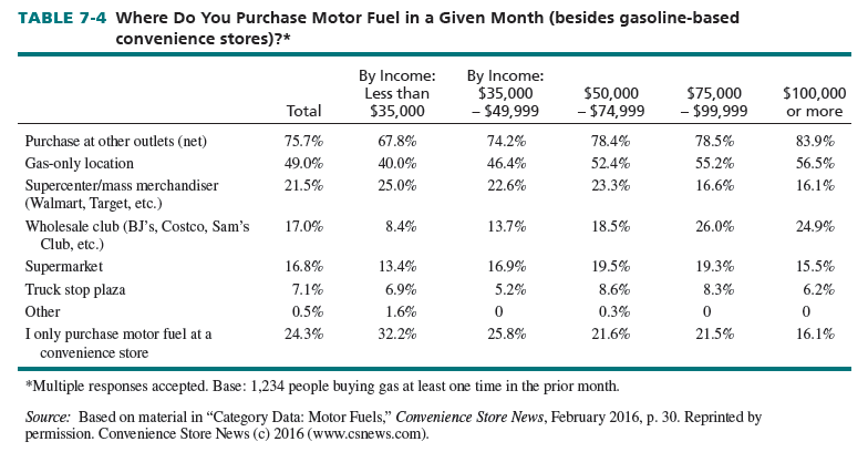 - Cross-shopping is high for apparel, home furnishings, shoes, sporting goods, personal-care items, and motor fuel. Table 7-4 shows cross-shopping for motor fuel purchases.