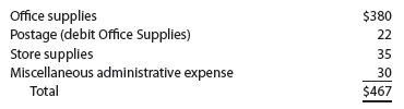 At the end of August, the petty cash receipts indicate expenditures for the following items: