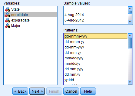 09-spss_date-time-wizard_string-to-date_step-1_choose-input-format Published 20/09/2023 at 446 × 317 in SPSS Tutorials: Date-Time Variables in SPSS ← Previous Next →