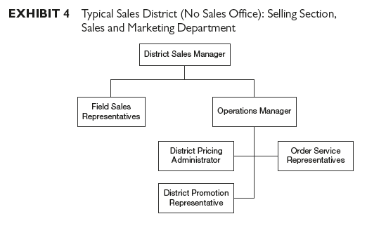 Stanamer’s sales force sold exclusively through wholesale plumbing and heating distributors. The 250-person force called upon 1,400 wholesalers, who, in turn, sold through 50,000 contractors and plumbers. Sales personnel worked out of twenty-three sales offices located in some but not all of thirteen sales districts. (See Exhibits 2, 3, and 4 for the organizations of the various types of typical sales districts.)